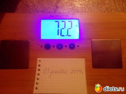 Вес на 03.12.2014 г. - 72,5 кг. Итого за дуэль минус 2,5 кг.