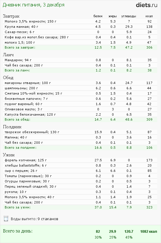 Калорийность продуктов