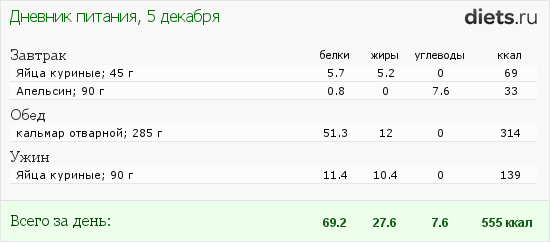 Сегодня совсем скудный рацион. В рыбный день, взяла кальмара, посмотрим, как он пойдет. Завтра рацион будет поинтереснее, а вообще близится 3 неделя, самая на мой взгляд тяжелая, надеюсь выдержу.