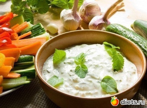 6. Соус к жареному мясу – мелко нарежьте помидор, зеленый лук, укроп, смешайте со стаканом йогурта или сметаны, добавьте толченый чеснок, перец по вкусу.