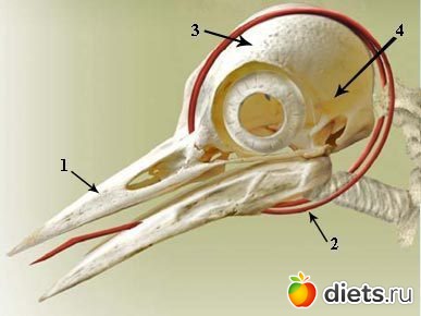 Выходя из правой ноздри, язык разделяется на две половины, которые охватывают всю голову с шеей и выходят через отверстие в клюве, где снова соединяются.