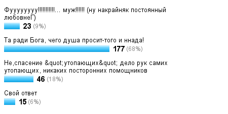 Спасибо ему огроменное за это!!! А то я последние пару лет над этим частенько задумывалась, тяжко все таки без мужика... А "на разок" меня мало кто привлекает, хоть я особа не отягощенная всякими моральными принципами, просто мужчин, которые мне нравятся крайне мало