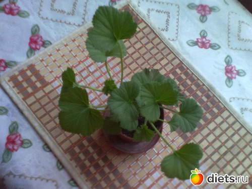А как же зимуют те, кто вошел в зимовку "правильно"? Черенок крупноцветной пеларгонии другого сорта нарастил три побега и крупные листья. Правда, черешки у них слишком длинные - сказывается короткий световой день. Но с этим обещает помочь зять - для досветки скоро появится люминесцентная лампа.