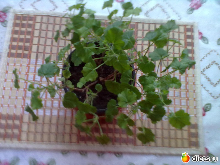 Мелкоцветная пеларгония отлично перенесла глубокую обрезку, почти полностью сбросила прошлогодние совсем измельчавшие и пожелтевшие к концу сезона листья, а новые, более яркие и зеленые выросли очень быстро.
