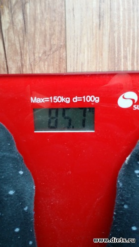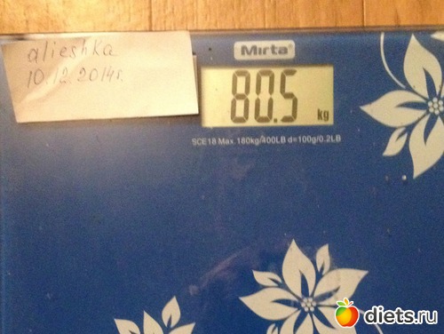 Начальный вес 80.4. Вот что значит выходные с мужем и вчера мясо по французски!!! Эх, слабость к вкусному...