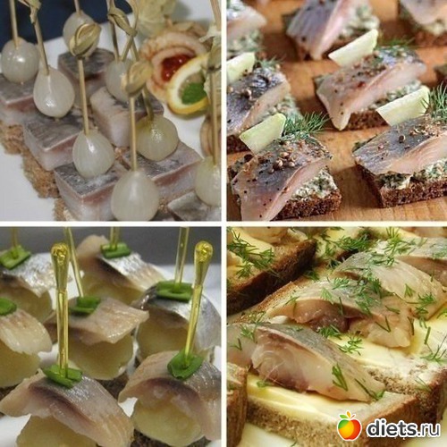 14. Соленая сельдь, свежее яблоко и маринованный лук.