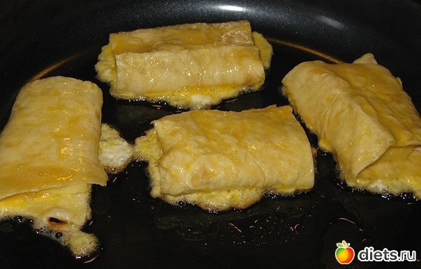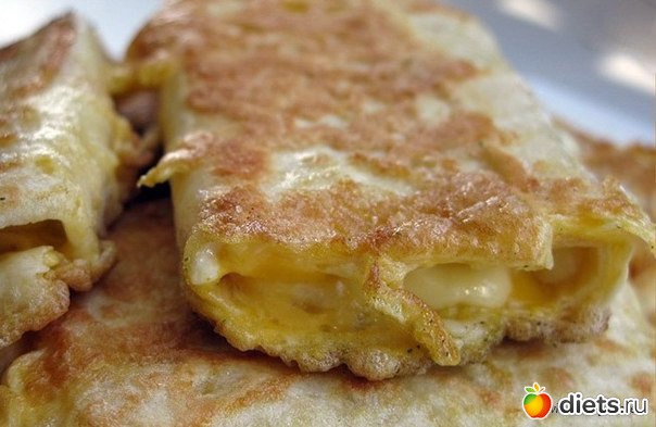 Сыр внутри плавится, а снаружи получается аппетитный румяный омлет - очень вкусно!!!