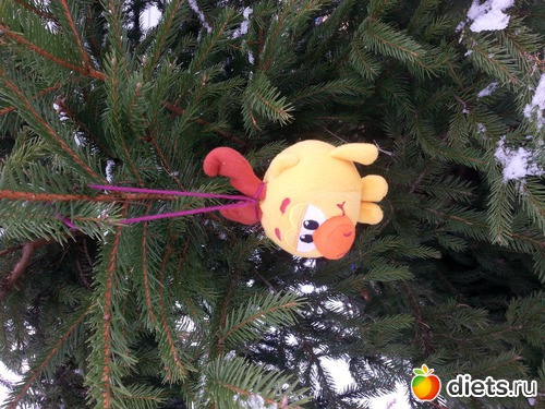 Мы донаряжали елку уличную игрушками. Ночью чуть не родила-снег с крыши сошел)))