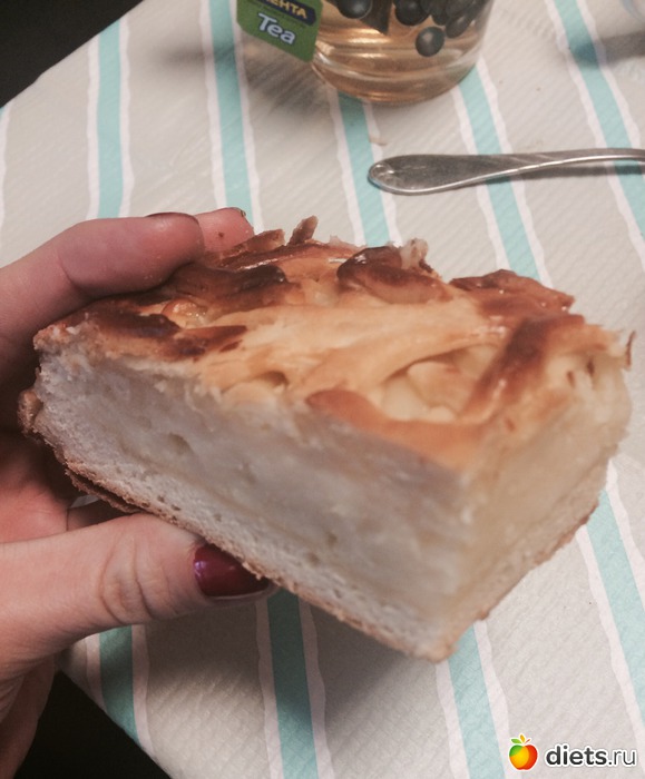 Когда вернулась, обнаружила, что коллега привез пирог с творогом (да-да, мои коллеги - филантропы, постоянно привозят вкусняшки!) и съела кусочек