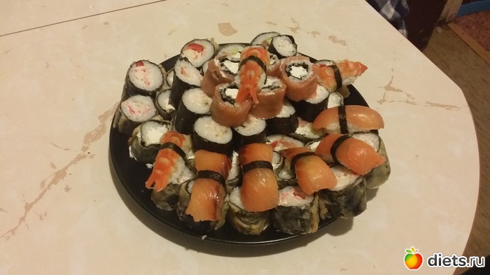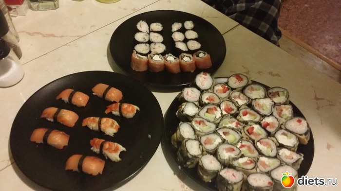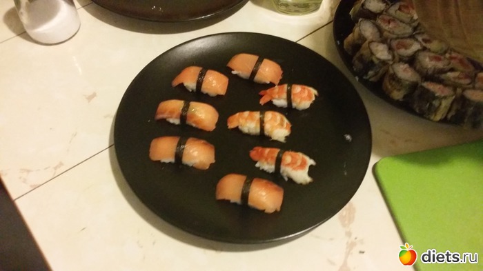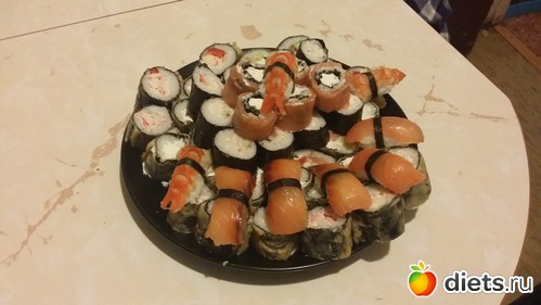 Мы тоже в эти выходные делали первый раз ролы. Но у меня нет набора, скручивали циновкой, тоже хорошо получаются. И вкусные, и МНОГО!!! А то купиши всем по 6 штук, не успел распробывать, а они уже закончились