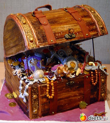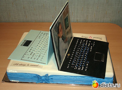 Имеется и тортик в виде рояля, милицейской машины (с гаишником!), в форме карточного пасьянса на зеленом сукне, в виде кофемолки и царской короны с драгоценными каменьями, и торт-фотоаппарат Nikon, и глобус, и торт-проигрыватель с шоколадной пластинкой «Я люблю тебя, жизнь!», рядом с которой приютился трогательный букетик ландышей. И даже торт-сундук с сокровищами, и торт в виде двух ноутбуков, прислоненных друг к другу «спинками». Это настолько филигранная работа, что от настоящих ЭВМ не отличить - садись да печатай!