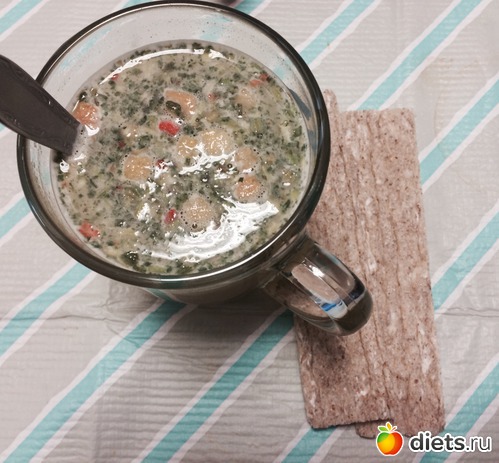 Первый прием пищи был в 12.20 - кружка горохового супа и 3 хлебца