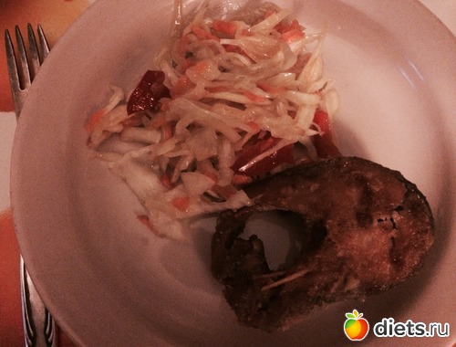 Вечером, около 21.00 был ужин - жареная форелька с капустным салатом