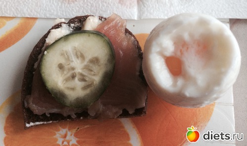 В воскресенье утром покушала яичко всмятку, бутерброд с красной рыбкой и огурцом
