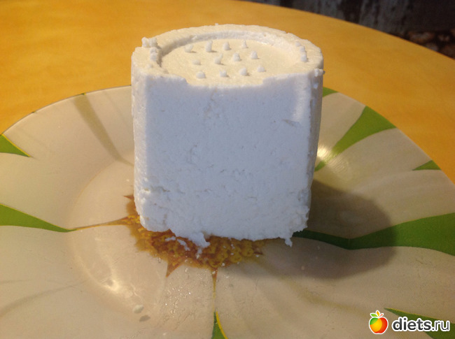 Нагреваем сыворотку до 80 г и выливаем туда лимонную кислоту разведенную в воде. Продолжаем нагревать до 90 г. Сыворотка опять свернется, только это будет не казеин как в случае с твердым сыром, а альбумин. выключаем и даем немного остыть. Затем выкладываем свернувшийся сыр в форму и даем стечь в течении 8-10 часов. Главное не передержать, а то получится сухим.