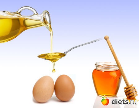 Смешиваем 1 столовую ложку меда, 1 ложку масла (любого. хоть репейного, хоть оливкового, хоть самого обычного подсолнечного)
