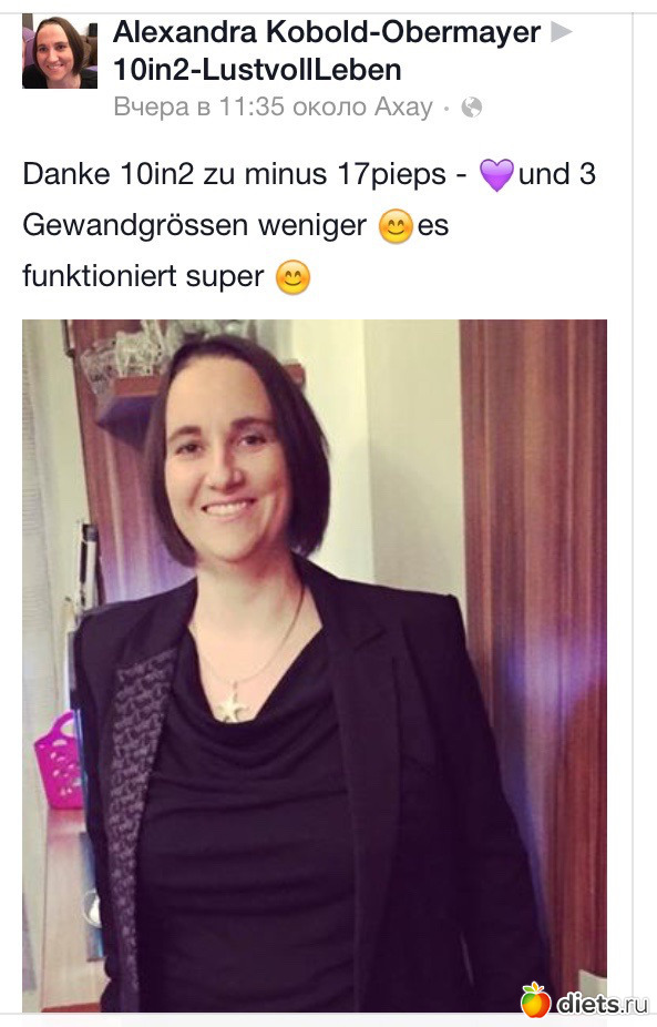 "Спасибо 10in2 за -17 кг и за то, что я уменьшилась на 3 размера.
