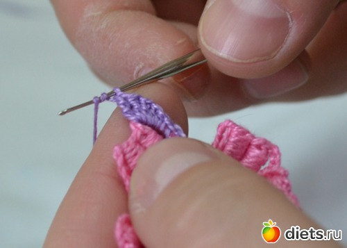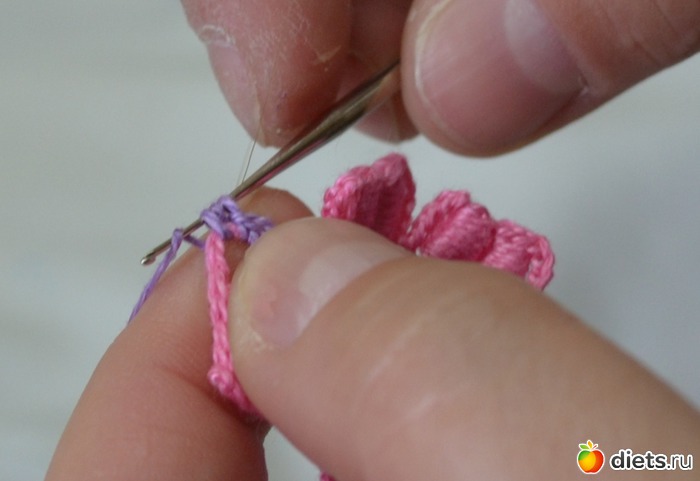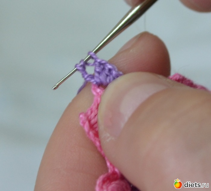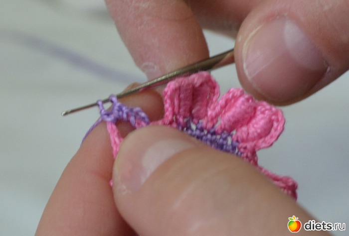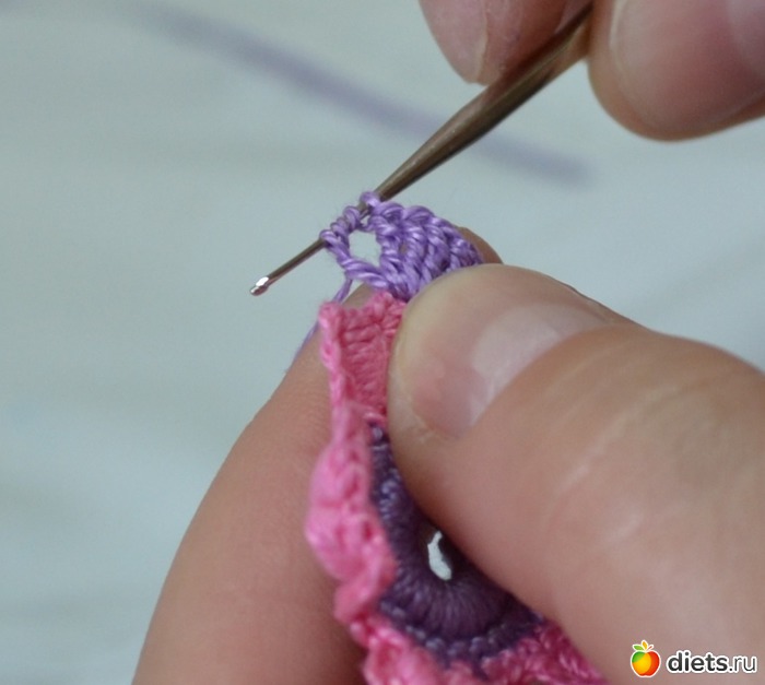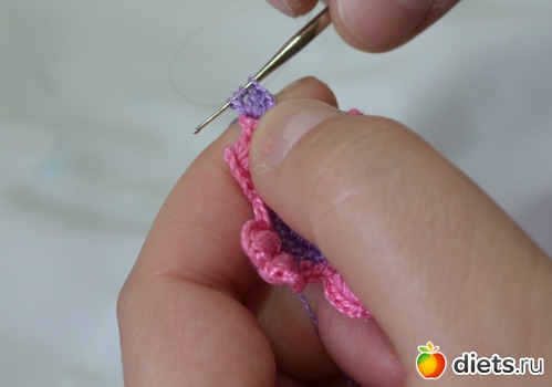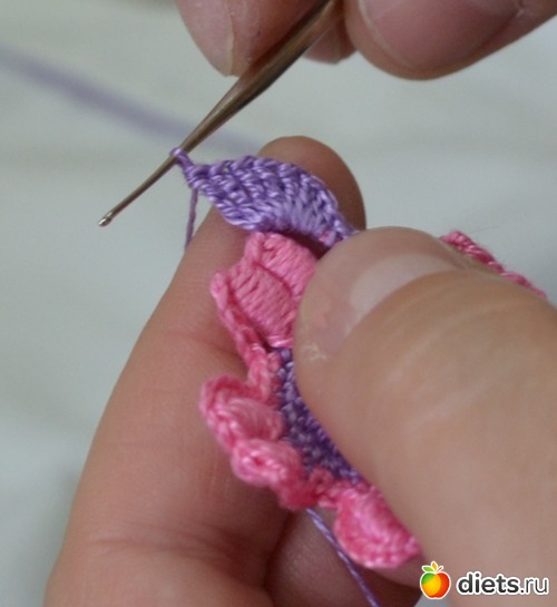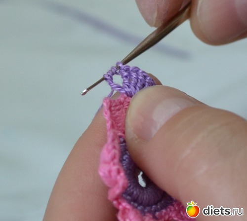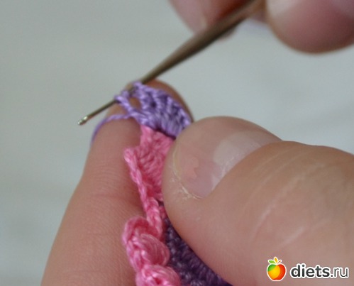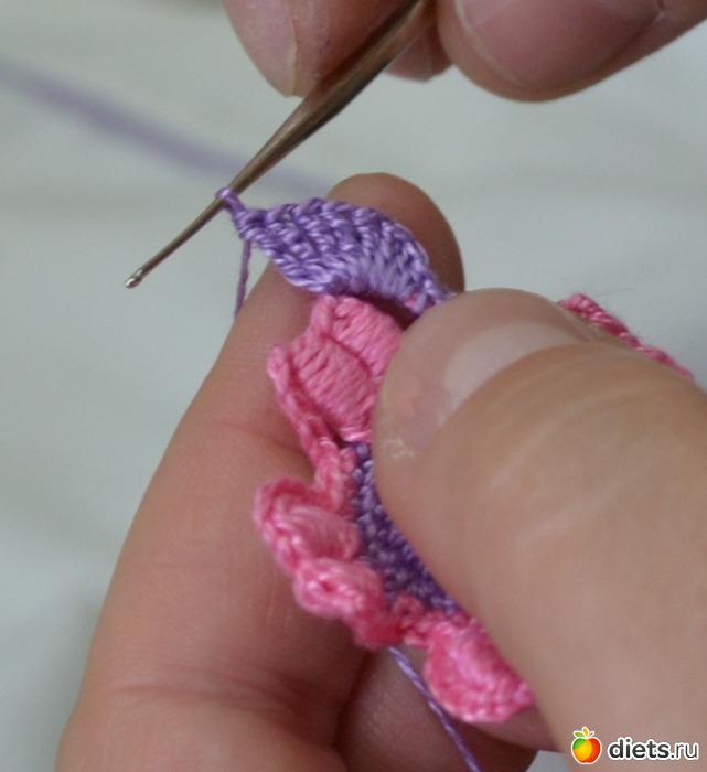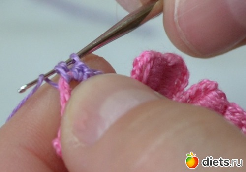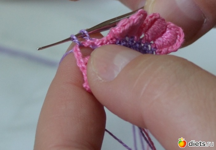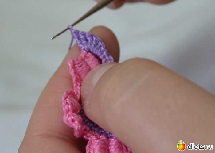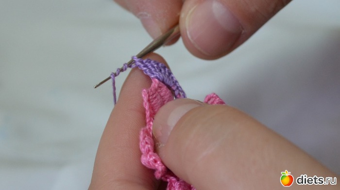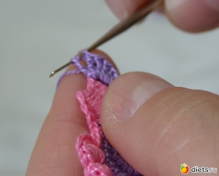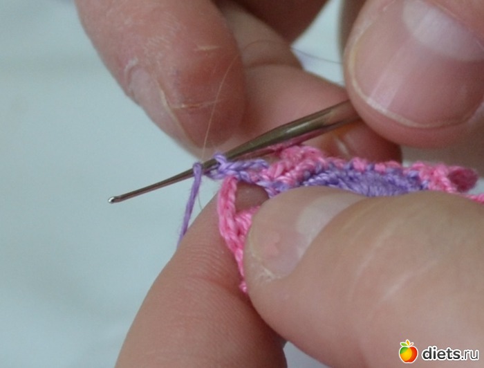 и протягиваем еще через две петельки на крючке