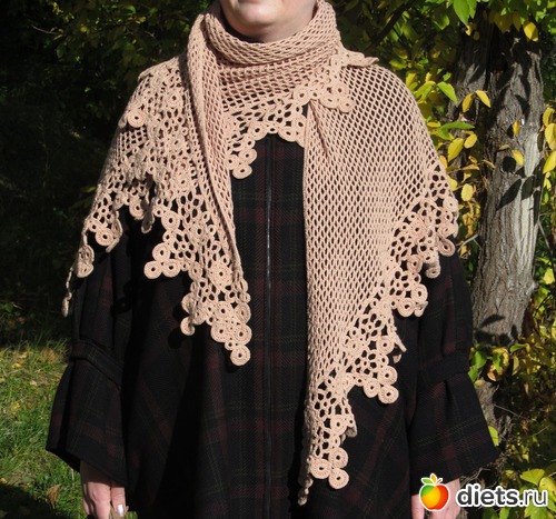 Я недавно себе связала шаль с элементами ирландского кружева, при этом не очень владея крючком, и об этом кружеве я мало что знаю. Кое-как разбиралась по картинкам из сети. Получилось хорошо, но хотелось бы научиться этому виду кружева.