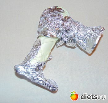 3. Обклеиваем клейкой лентой, одновременно обминая ее руками и дополнительно придавая фольге нужную форму.