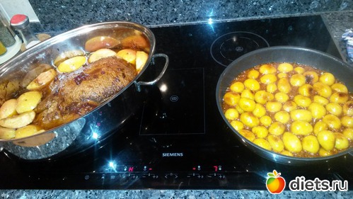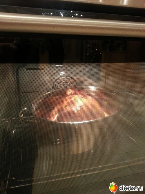 Я всё выпекаю и готовлю в духовке при классических 200’С. Кубики Кнорр я привела просто как пример. Главная идея, что должен быть вкусный соус. Сначала ты его готовишь классическим способом. Например, такой же когда ты делаешь жаркое или что-то еще. Ты можешь взять специальные загустители для соуса, кубики Кнорр или Магги, различные специи и т.д. Просто потом добавляешь брусничный джем для сладости и вино (для градуса