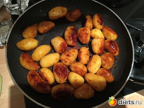 Картофель купила малюсенький,но подруга настояла,чтобы отварить в мундире,почистить,а потом обжарить и мы так и сделали.Увы,картошка в кадр не попала