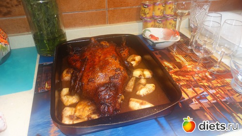 Тогда не было пакетов для запекания.я ,,танцевала,,возле гуся 3 часа,В итоге,когда наступил новый год,,,я уже не хотела ни гуся,ни праздника,,,,,Гусь получился очень вкусный!!!!!