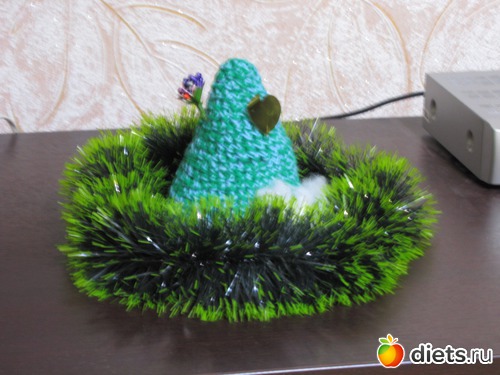 Воодушевившись примерами форумчанок, я тоже решила связать новогодние Ёлочки. Поскольку это были мои первые связанные крючком изделия, то удалось связать их не с первого раза. Сначала замахнулась сразу на большую, даже связала, но не понравилась, решила связать две, но маленькие.
