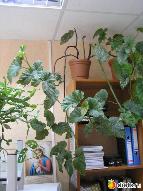 Вот тут у бегонии коричневые стволы с междузлиями смотрятся вполне декоративно рядом с зелеными листьями. Специально не стала обрезать, поставила наверх, чтобы выглядело, как ампельное растение