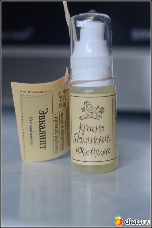 От производителя: основным действующим компонентом нашего масляного коктейля «Эвкалипт» является инфуз (масляный экстракт) - настоянное на листьях эвкалипта масло виноградной косточки. В процессе приготовления инфуза эвкалипт отдает все полезные вещества маслу виноградной косточки для объединения их питательных свойств. Эвкалипт используется в косметологии для стабилизации состояния жирной, склонной к образованию угрей и расширению пор кожи. Благодаря своим антисептическим и дубильным свойствам, эвкалипт нормализует работу сальных желез, эффективно борется с угревой сыпью, способствует регенерации кожи после травм и обморожений. Отлично впитывающееся в кожу масло виноградных косточек - сильный антиоксидант. В его состав входят витамины А и Е. Инфуз эвкалипта на этом масле позволяет использовать его клеточные транспортные функции для оперативной доставки к месту воспаления антисептика эвкалипта. Масло лесного ореха активно сужает поры и восстанавливает нормальный жировой баланс, увляжняет и тонизирует кожу. Идеально подобранная смесь эфирных масел, также входящая в состав коктейля, оказывает комплексное воздействие на кожу: тонизирует и увлажняет без образования жирного блеска, регулирует жировой баланс кожи, оказывает антибактериальный и лифтинговый эффект.