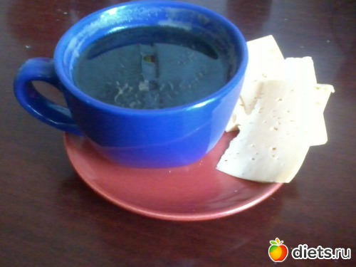 Пока вариться курочка, я ужасно проголодалась и решила выпить кофе с твердым сыром, в книге про раздельное питания он разрешается, ведь он относиться к белковым продуктам, и всего то я сьела 30 гр.