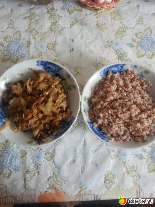 Обед - гречка + тушеная капуста ( не знаю как с сочетаемостью, но было вкусно )