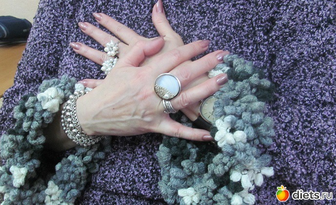 У нас сотрудница большая мастерица. Меняет вязанные вещи каждый день. И одна вещь краше и оригинальнее другой.