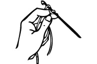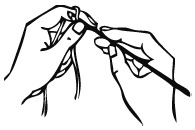 Возьмите конец нитки, перекиньте его через указательный палец левой руки и средним и безымянным пальцами слегка прижмите обе нитки к ладони.