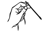 Обратите внимание, как ложиться нитка на пальце и как прижимаются обе нитки большим пальцем. Именно так и надо держать нить при начале вязания. В правую руку возьмите крючок, например, как берут карандаш или перо - между большим и средним пальцами, а указательным придерживайте его сверху. Крючком подденьте нитку на указательном пальце левой руки и сделайте полный оборот влево, придерживая петлю под крючком большим пальцем.