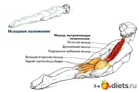 Упражнение 1. Исходное положение и выполнение: лежа на животе, руки за головой или вдоль туловища, ноги фиксируем, поднимаем верхнюю часть тела от пола.