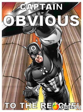 Капитан Очевидность – он же К. О., Капитан, Captain Obvious, Captain Bobvious и просто Кэп – лучший супергерой всех времён и народов. По крайней мере, он единственный из них, кто приносит реальную пользу, побеждая не мнимых злодеев, а настоящих идиотов. Кэп не делит людей на категории – он всегда с радостью придёт на помощь и недоразвитой школоте, и выжившему из ума маразматику и просто тому, чья тупость превышает определённый градус.
