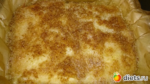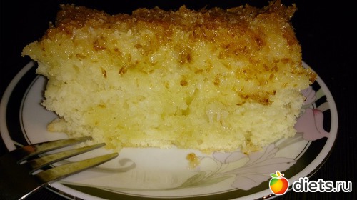 Давно на него поглядывала и сегодня решила все-таки спечь. Вкусный. Тесто не приторно сладкое, а вся сладость сверху пирога. Единственный минус, жирноват выходит, но если убрать часть сливочного масла и заменить его сливками, думаю будет лучше. В другой раз именно так и сделаю.