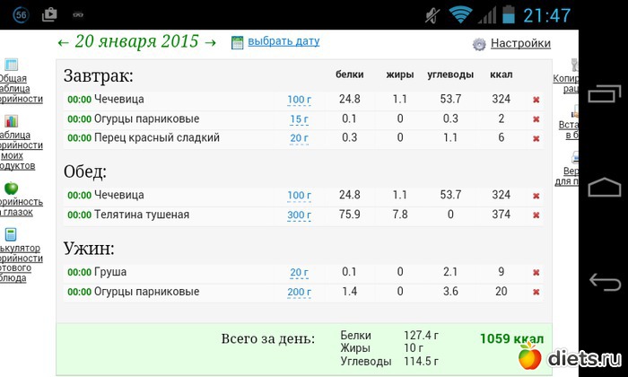 Калорийность продуктов