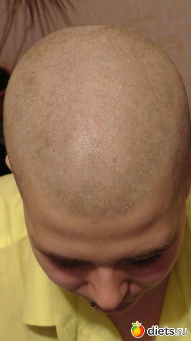 Он видел каково мне каждый день со слезами на глазах разглядывать клоки волос на расческе... Так что он просто смирился. Я по началу стеснялась очень, и даже иногда до слез было с криками: "Да перестань ты на меня пялиться!!!"