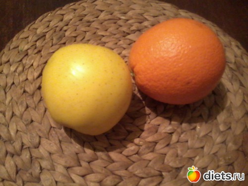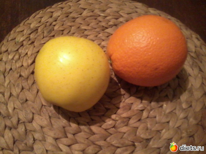 из фруктов были яблоко и апельсин плюс зеленый чай