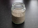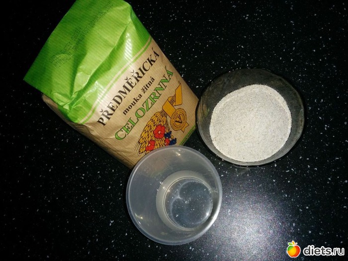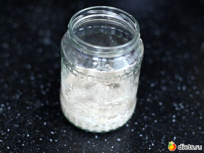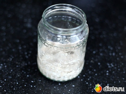 12.30. Взяла 80 г (100 мл) цельнозерновой ржаной муки, добавила 100 мл воды. Смешала в стеклянной банке(важно! можно пластик, фарфор, но не металл!).