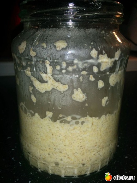 Получается, на второй день я убрала закваску в прохладное место (не в холодильник) примерно на сутки. И потом понадобилось 4 дня, чтобы опять разогнать процесс брожения. Только сегодня видно, что опять пошел активный процесс. Обычно достаточно 5-ти дней для выращивания закваски. У меня из-за такой оплошности ушло 7 дней
