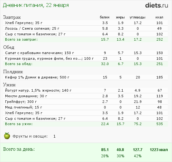 P.S. к дневнику питания: салаты ем без майонеза всегда, обычно без заправки вообще, в крайнем случае, заправляю домашним несладким 0,5-1,5% йогуртом со специями
