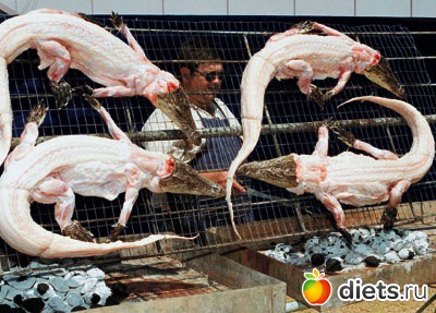 Я гастрономический экспериментатор - в др. странах почти всё пробую...и кузнечиков, и крокодила...только змею не смогла, хотя пахла она восхитительно...не могу есть себе подобных...каннибализмом отдаёт