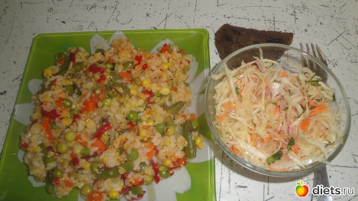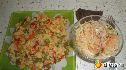 В белковый день-мясо отварное+салат, сельдерей+огурец+капуста