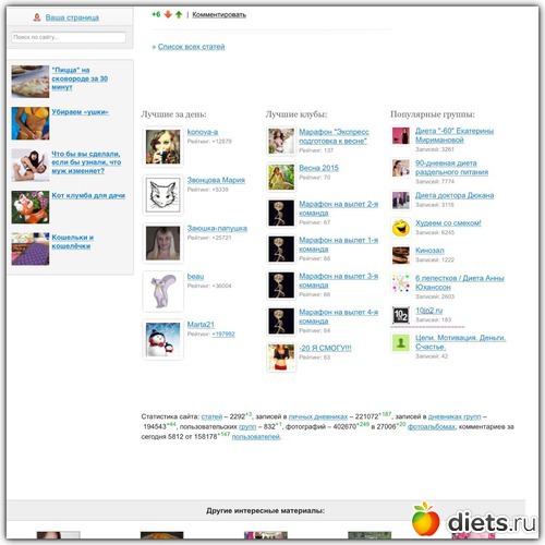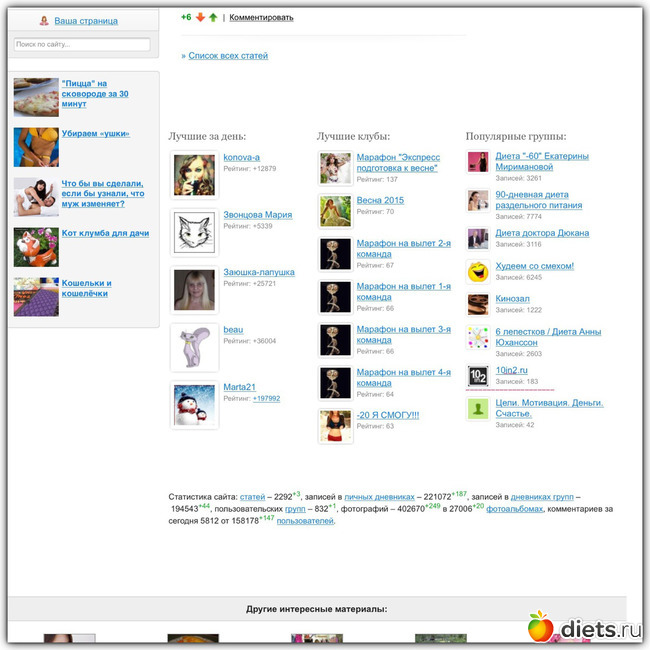 Мы популярны на сайте diets.ru! Девочки, только что увидела, что мы в числе наиболее популярных групп на этом сайте!