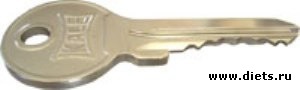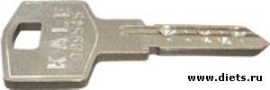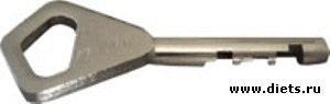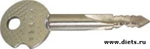5. Ключ для цилиндрового дискового замка. Взломостойкость на сегодняшний день не вполне достаточная. Вскрывается большая часть таких замков с помощью обычного слесарного инструмента. Время вскрытия (со значительным шумом) 10-15 минут.
