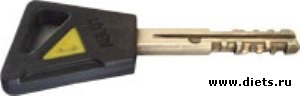 7. Ключ для цилиндрового, штифтового замка. Пока не отмечено случаев вскрытия таких замков отмычками. Дубликат ключа можно заказать только при наличии специальной идентификационной карты в сервис-центре у дилера, а в некоторых моделях — только на заводе-изготовителе. Слабым местом таких замков является возможность выбивания, выламывания цилиндра с помощью слесарного инструмента. Рекомендуется устанавливать такие замки только в комплекте со специальной защитой цилиндра. Время бесшумного вскрытия замка без защитной накладки 2-5 минут, и 30 – 40 минут со значительным шумом — с защитной накладкой.