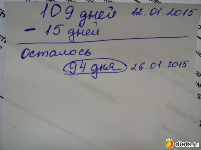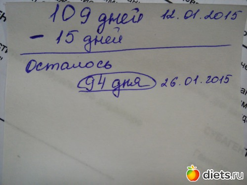 а потом решила посчитать сколько дней прошло и осталось... Поскольку я худею до 30 апреля включительно, у мкня получается немного больше чем 90 дней, но я надеюсь продержусь... Решила вот такой листик завести...